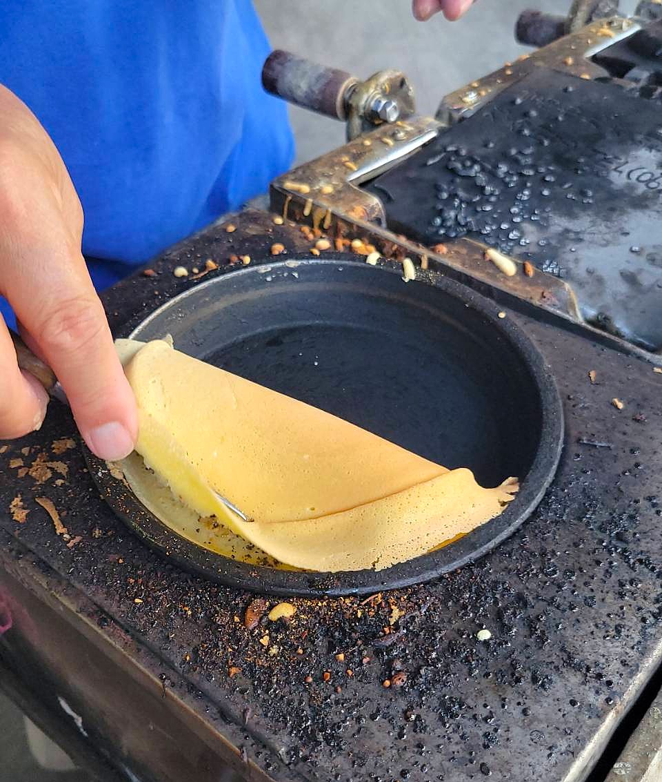 攤位小巧可愛,只有兩爐雞蛋糕+一爐石頭餅,幾乎都是現點現做,