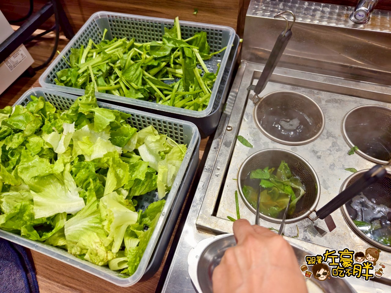 旁邊還有燙青菜區,提供兩種當天新鮮蔬菜,這次吃到菠菜、大陸妹,淋上一旁的肉燥就很好吃。